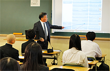 | 令和7年12月10日(水)、江戸川高校を卒業した先輩の社会人の方々から話を聴き、勉強に対する心構えや勤労観・職業観を培うとともに、江戸高生としての伝統の重さを認識し、今後の自分の進路を考えるきっかけとするための83期生進路行事『ようこそ先輩』が開かれ、蓮葉会から11人の講師を派遣いたしました。 66期生以来18回目の講演となり、職業内容と高校時代から現在に至るまでの体験が熱く丁寧に語られました。 |